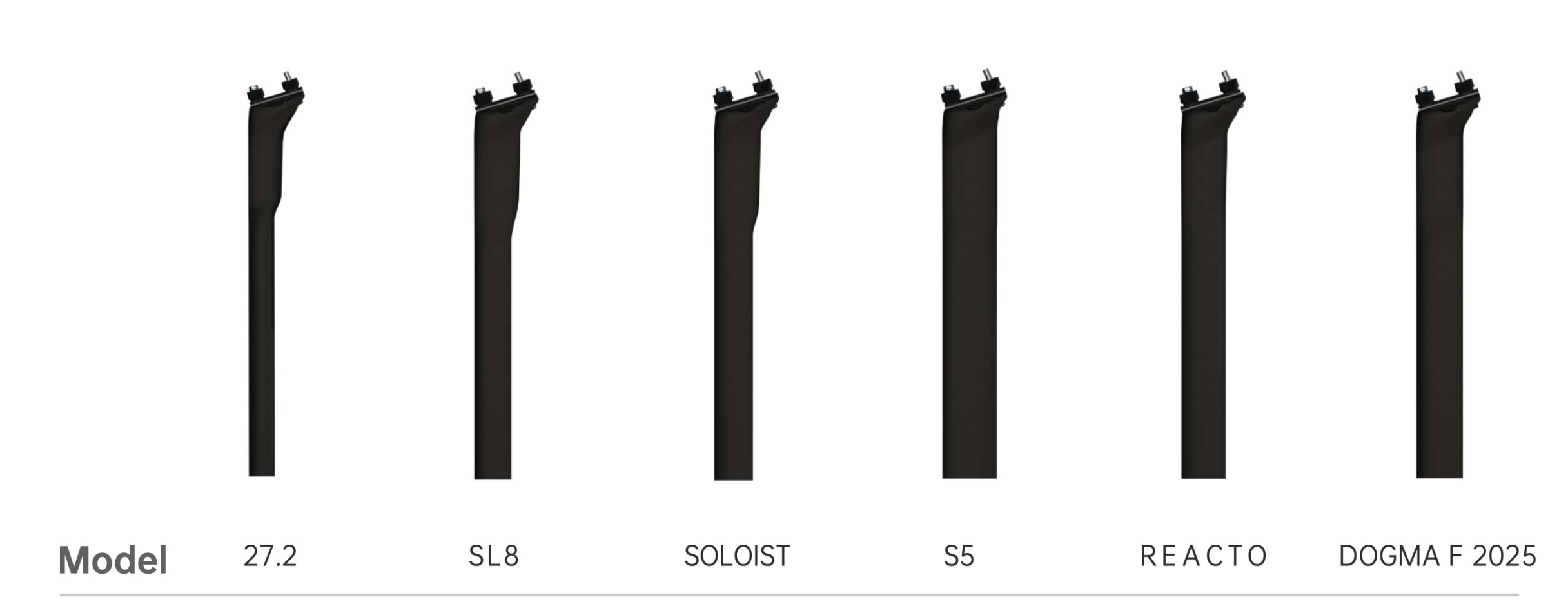 | Model | 27.2 Dia, Cervélo S5, Cervélo Soloist, Merida Reacto, Pinarello Dogma F 2025, Specialized Tarmac SL8 |