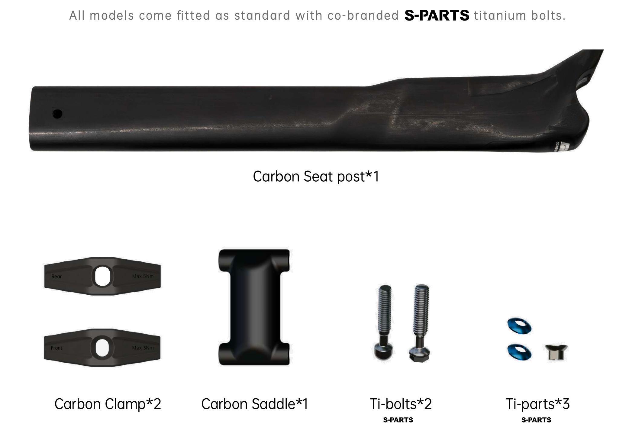 - Premium Parts: Equipped with a full-carbon saddle clamp and lightweight titanium bolts.